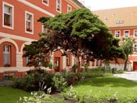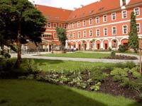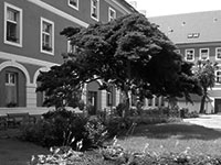 Rekonstrukce budovy zahrnovala i obnovu výsadeb, včetně trávníků. Zachovány byly dvě vzrostlé lípy v rozích a jalovec. Řešena byla keřová výsadba s trvalkami.